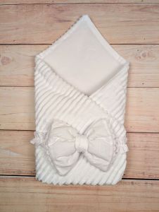 Ніжна ковдра-конверт розміром 90×80 см, виготовлена з натуральної бязі та м’якого плюшу. Наповнювач із синтепону щільністю 80 г/м² забезпечує комфортний мікроклімат для малюка в теплу пору року.
