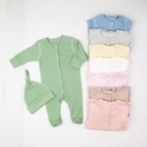 Ніжний комплект з інтерлоку рапорт якості пенье — ідеальне рішення для новонароджених. Виготовлений з м’якої та гіпоалергенної 100% бавовни, він забезпечує комфорт і тепло з перших хвилин після народження. Якісний крій, делікатна тканина та приємна посадка роблять цей комплект незамінним у перші місяці життя малюка.