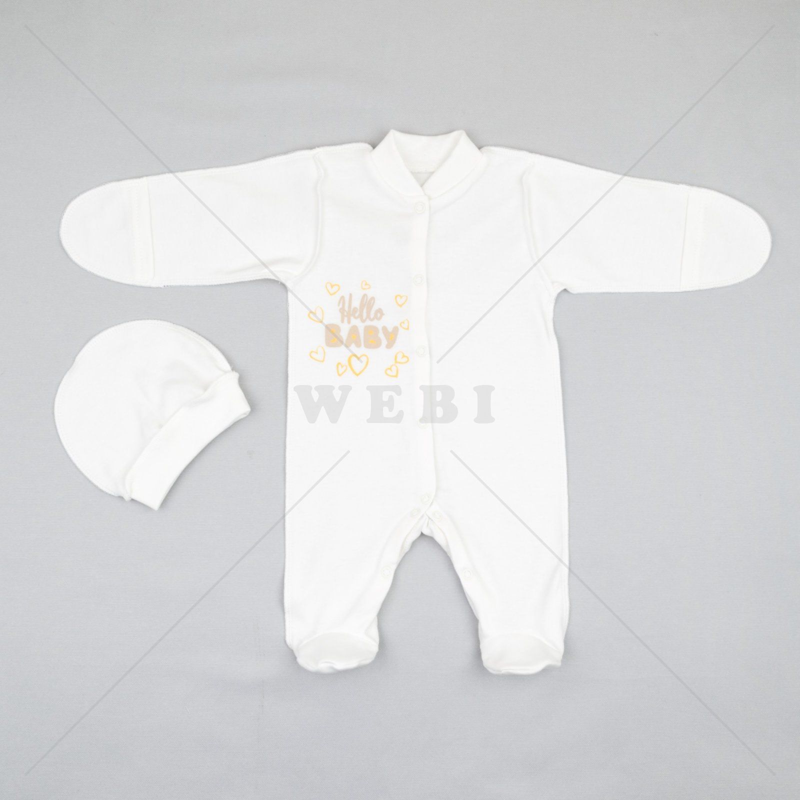 М’який комплект з шапочки та комбінезона з тканини інтерлок пенье подарує вашому малюку комфорт і захист у будь-яку пору року. Матеріал ніжний, дихаючий та гіпоалергенний, ідеальний для ніжної шкіри новонароджених.